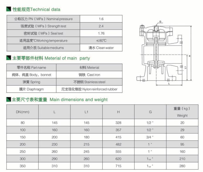 2、工作平稳优良。在规定的使用压力范围内,可保护无水锤冲击。